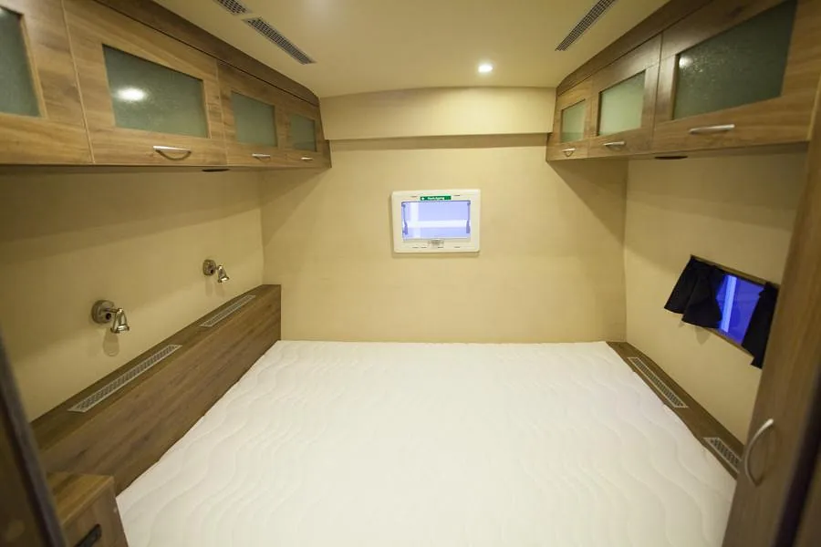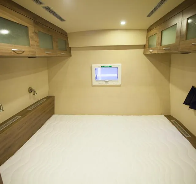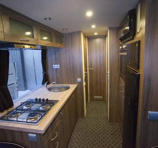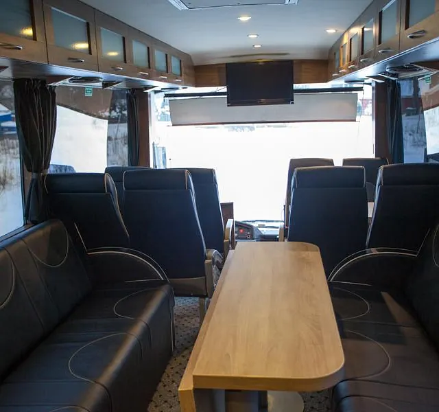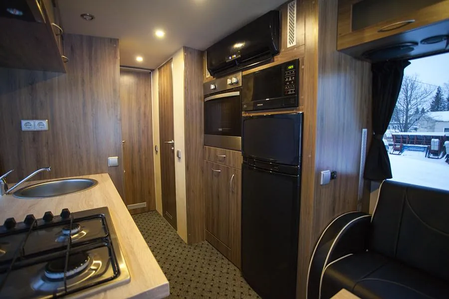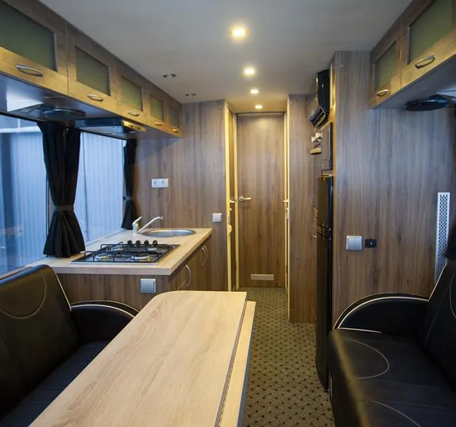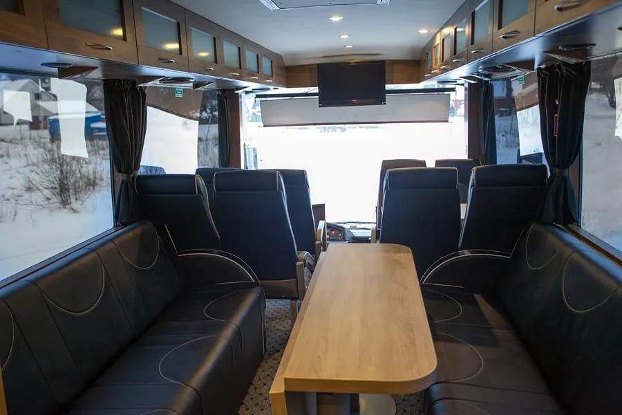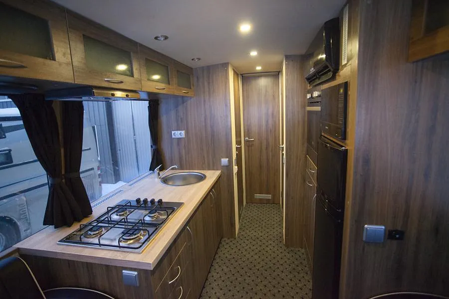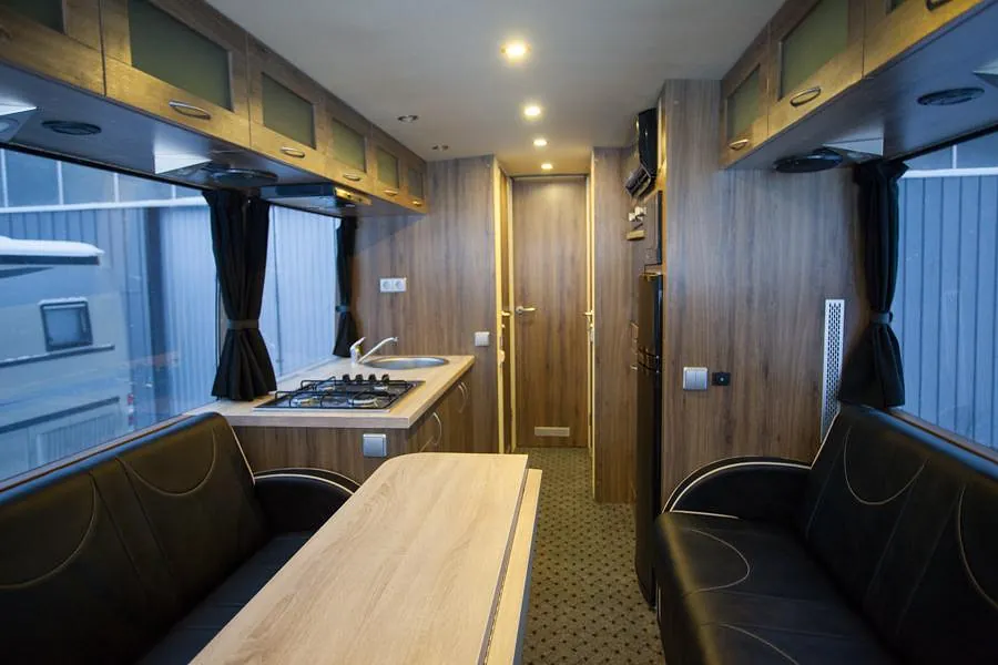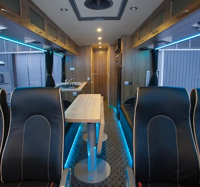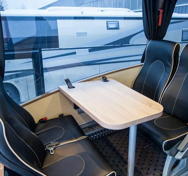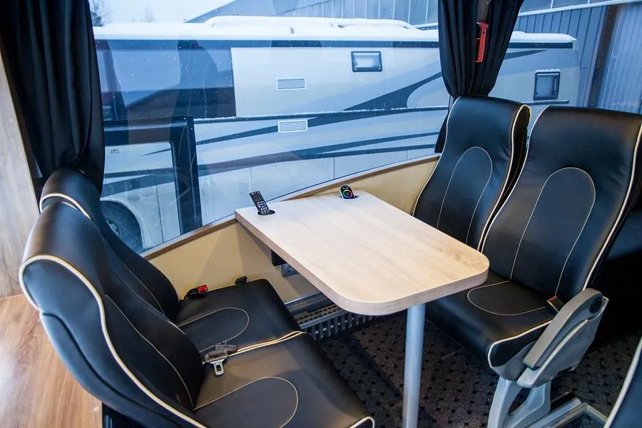 Bussen ble prosjektert med en del ekstrautstyr og er blitt en flott familiebuss! Høyreist og flott påbygg.
