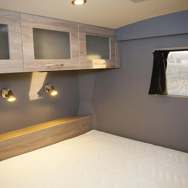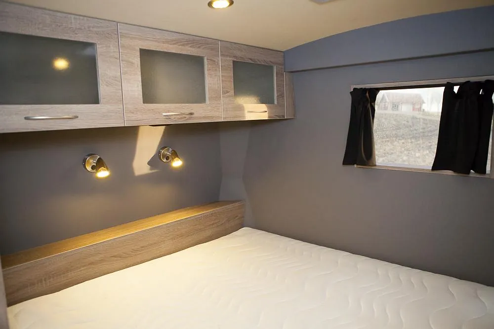 Eget «Master bedroom» med stor dobbeltseng på eget rom, køyesenger, kombinertbad med dusj-toalett-vask, romslig kjøkkenløsning med alle fasiliteter, egen lounge/sofagruppe med god plass for 6 personer til bords, stort multimedia anlegg med tv/dvd og rikelig med lyd, varmepumpe/ac og mye mer.