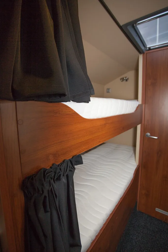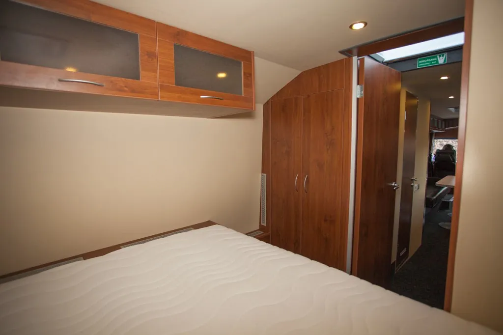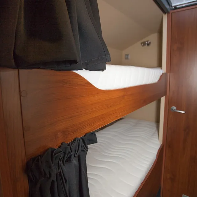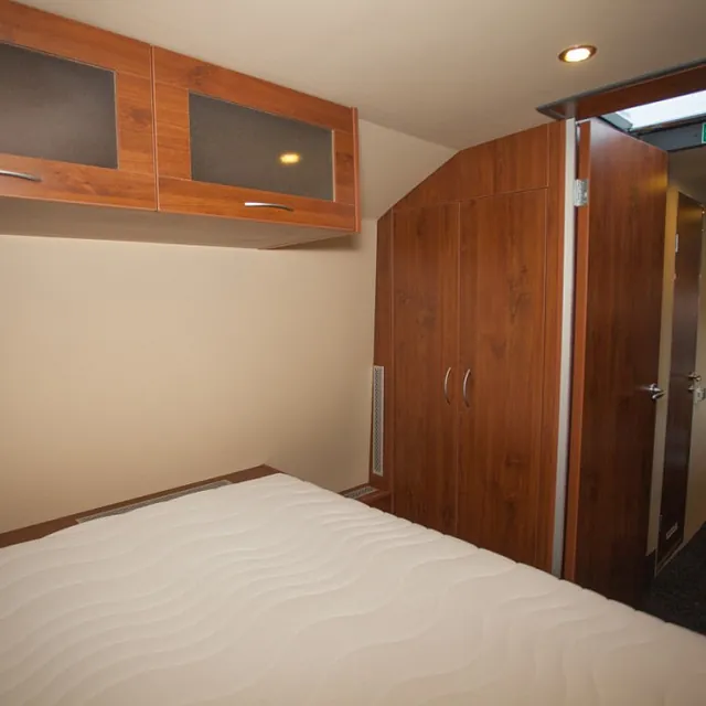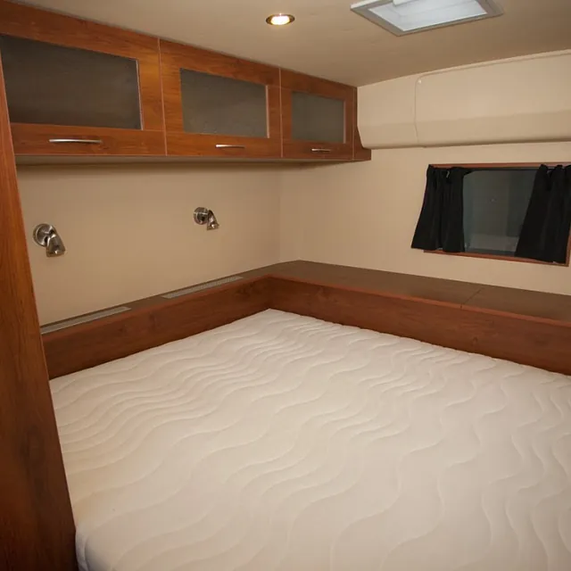 Eget «Master bedroom» med stor dobbeltseng på eget rom, køyesenger, stort kombinertbad med dusj-toalett-vask, romslig kjøkkenløsning med alle fasiliteter, egen lounge/sofagruppe med god plass for 6 personer til bords, multimedia anlegg med tv/dvd, varmepumpe/ac, diesel luftvarmer og mye mer!