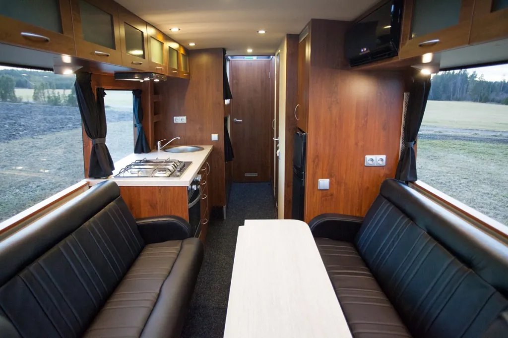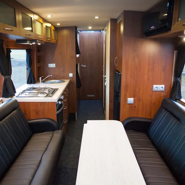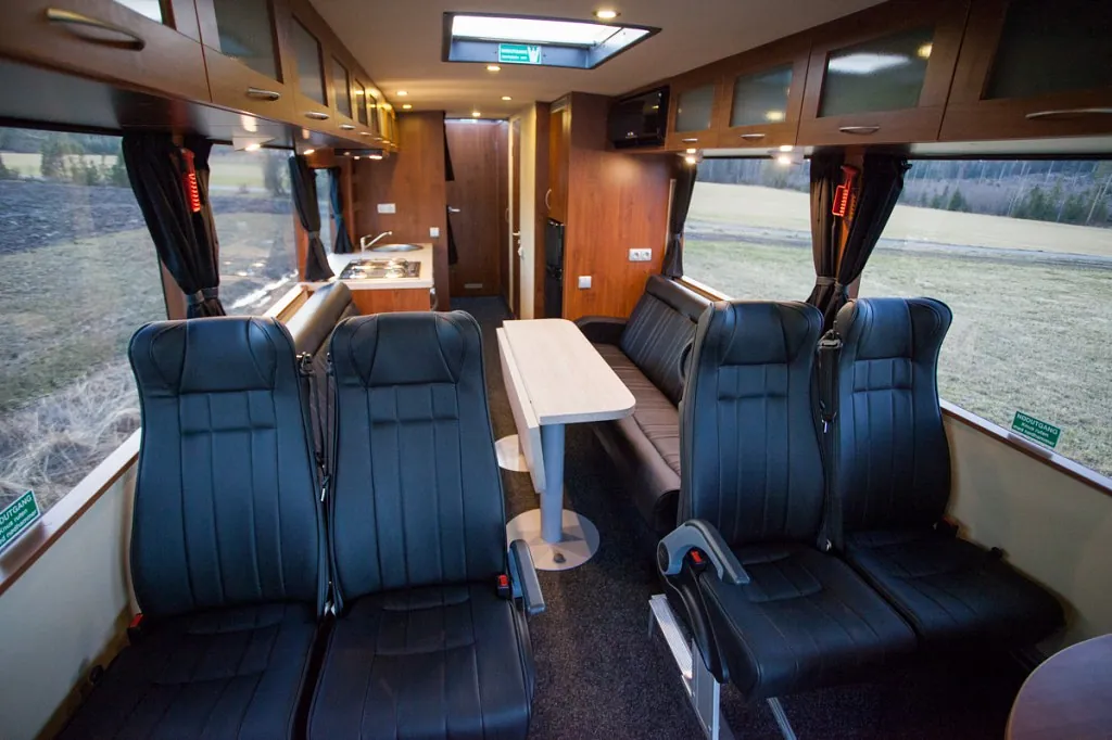 Fin familie, motorsport eller turné-buss med en god planløsning for 6 personer, hvor det fortsatt er god plass!