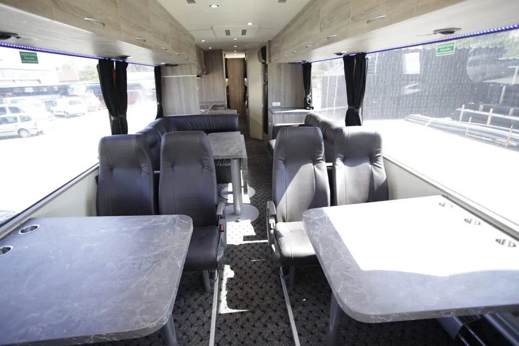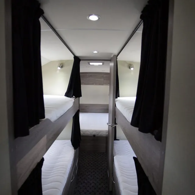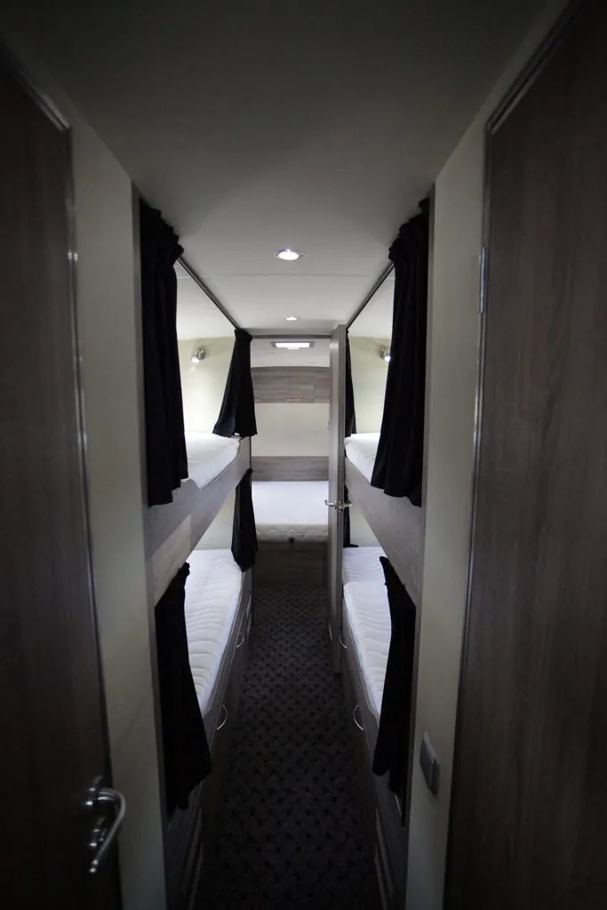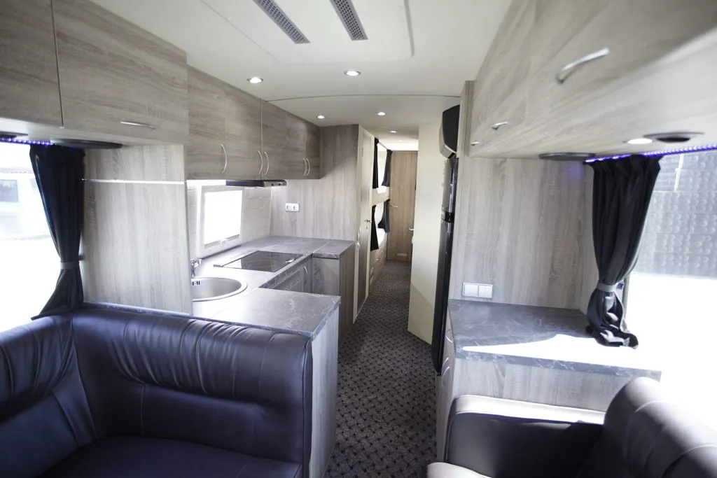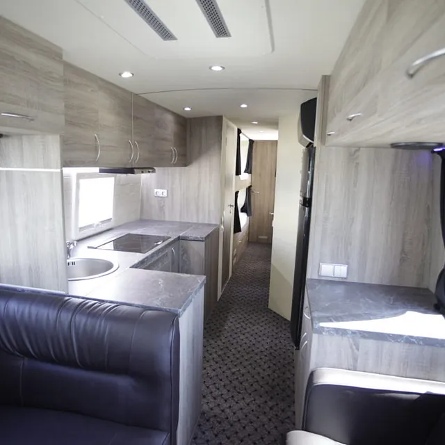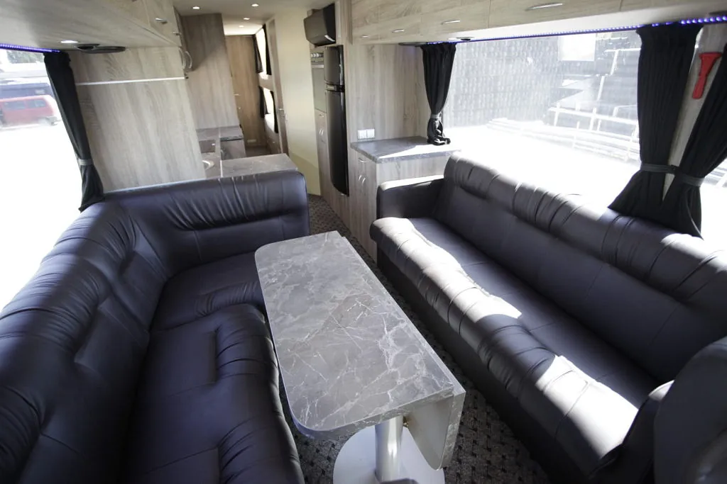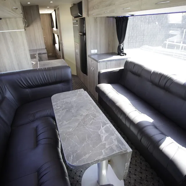 Denne har spesielt god plass i en fremre del med 8 sitteplasser i grupper og en diger behagelig sofagruppe med plass til mange tilbords! Digre lasterom med masse plass!