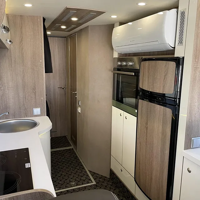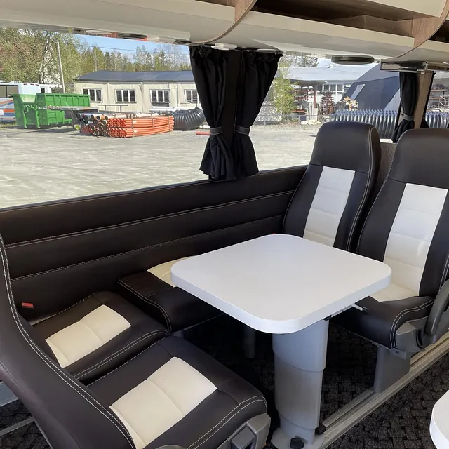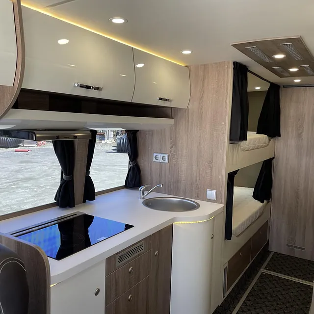 Fullt utstyrt campingbuss, med mulighet for innkjøring av bil i lasterom. Denne kan brukes like fullt til billøpet, som til campingturen med familien.