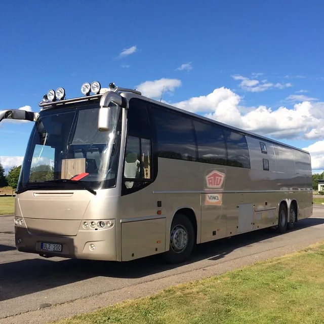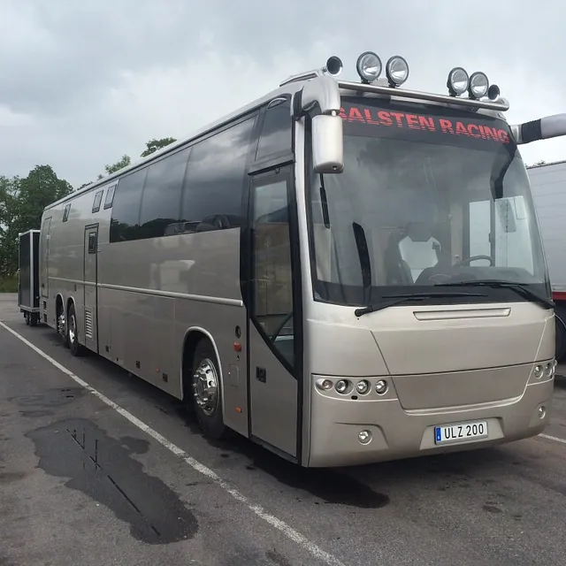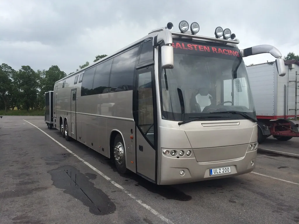 Funfact: Bussen har også fått montert tilhengerfeste og vil i Sverige (I tillegg til sine allerede 15 meter) gå med 7 meter skaphenger! Denne sjussen vil aldri kunne snike seg frem noen plass…