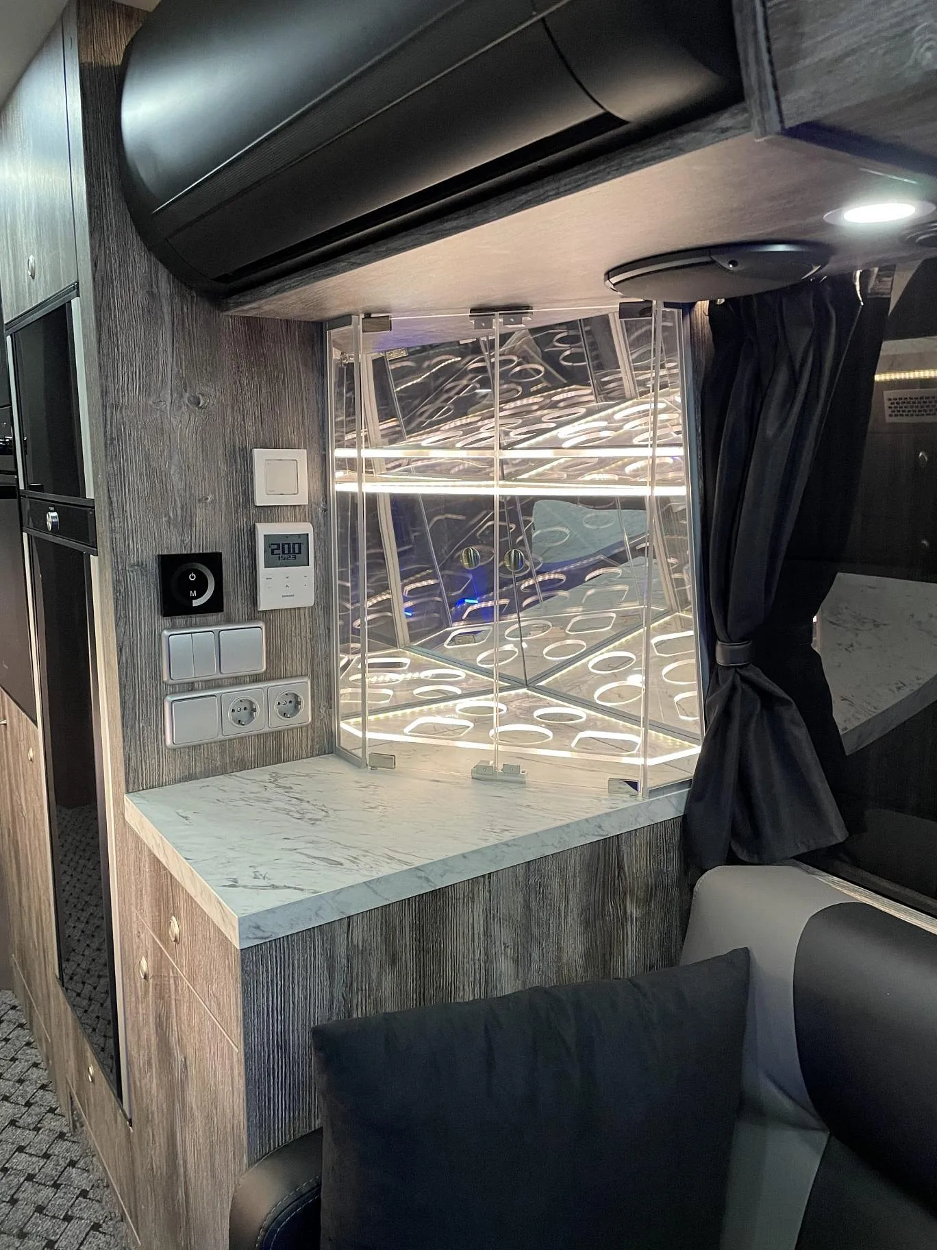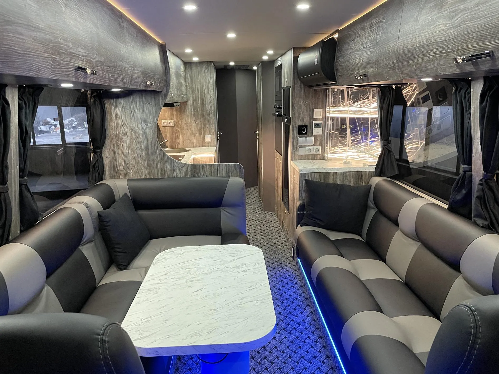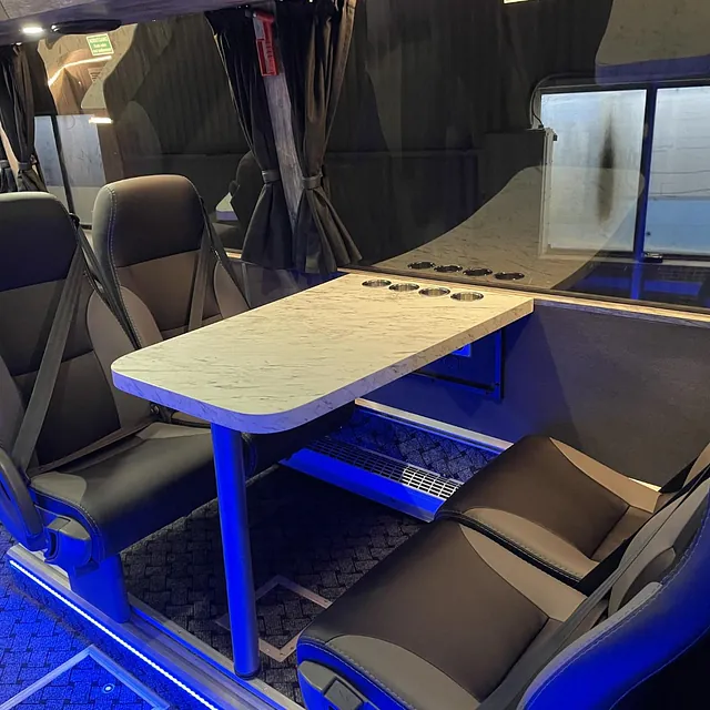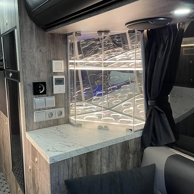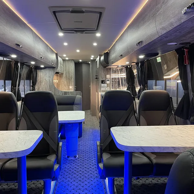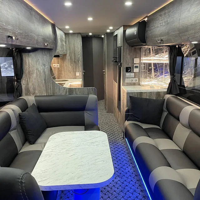 En meget flott og eksklusiv buss som skal brukes som bolig for arbeidere. Bussen skal brukes året rundt i kalde forhold, og har bla.: