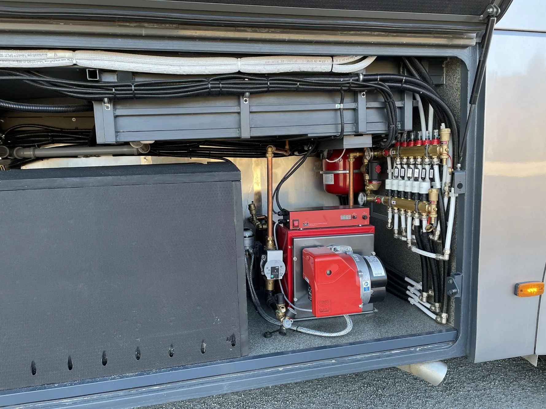 - Vannbåren gulvvarme-system, oppdelt i forskjellige soner i hele bussen!