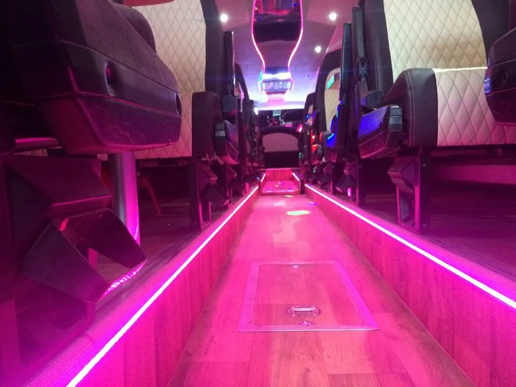 Fullt rigget med stereo, LED striper i all-mass, flotte seter og lounge, dekorskinn på vegger og tak og MASSE mer!