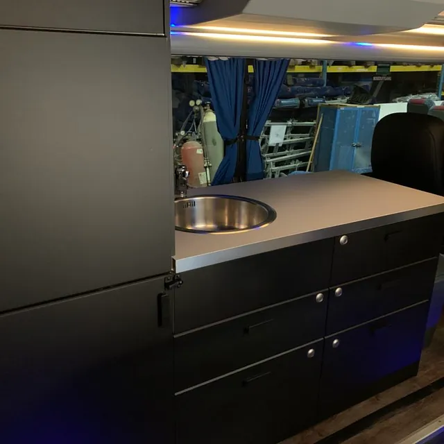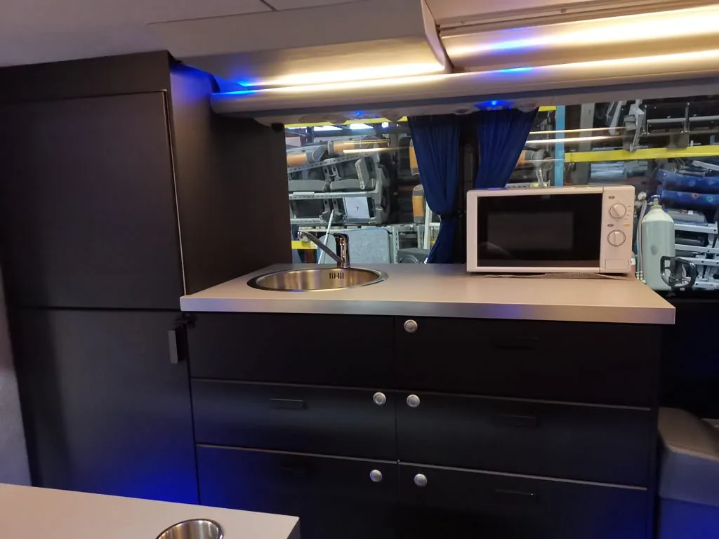 Oppgradering av toalett og kjøkkenløsning i en VDL dobbeltdekker, for kunde.