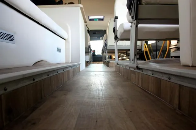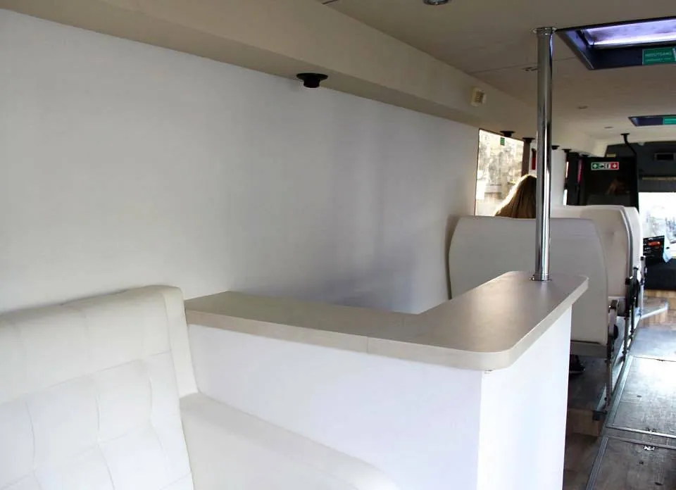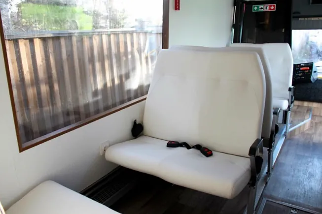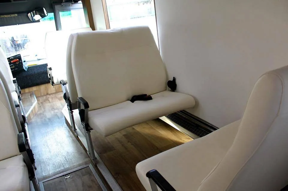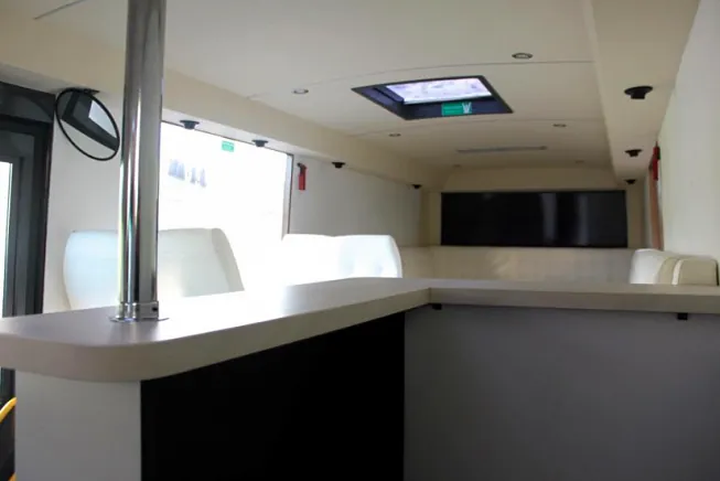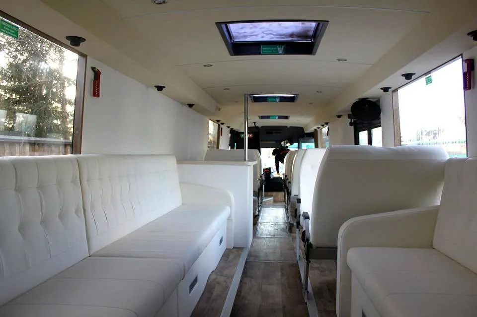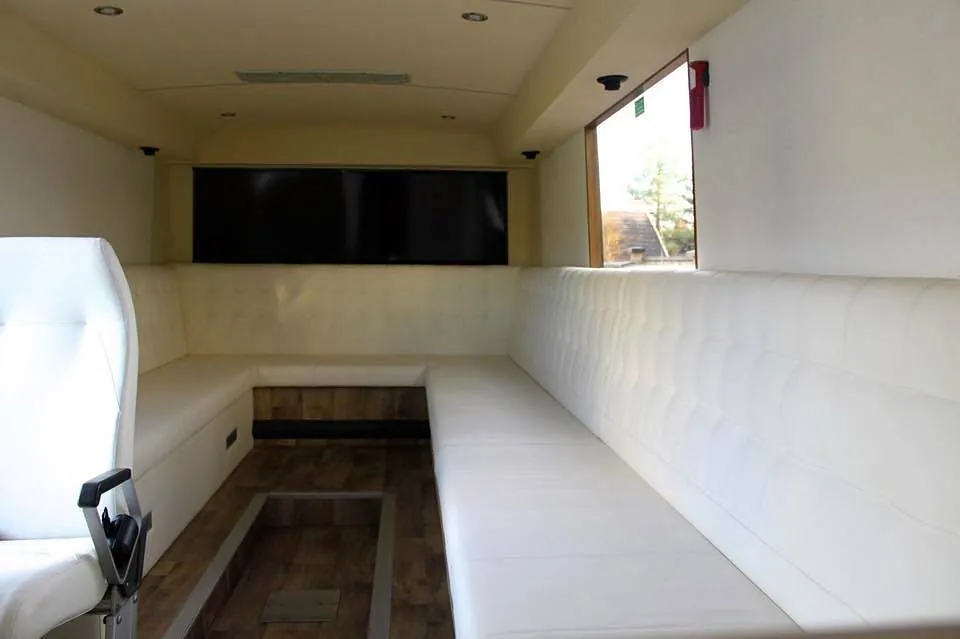 Bussen er bygget 100% etter kundes egne spesifikasjoner på farger, skinn, gulv etc. Resultatet taler for seg selv!