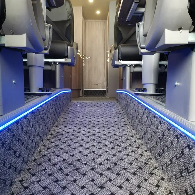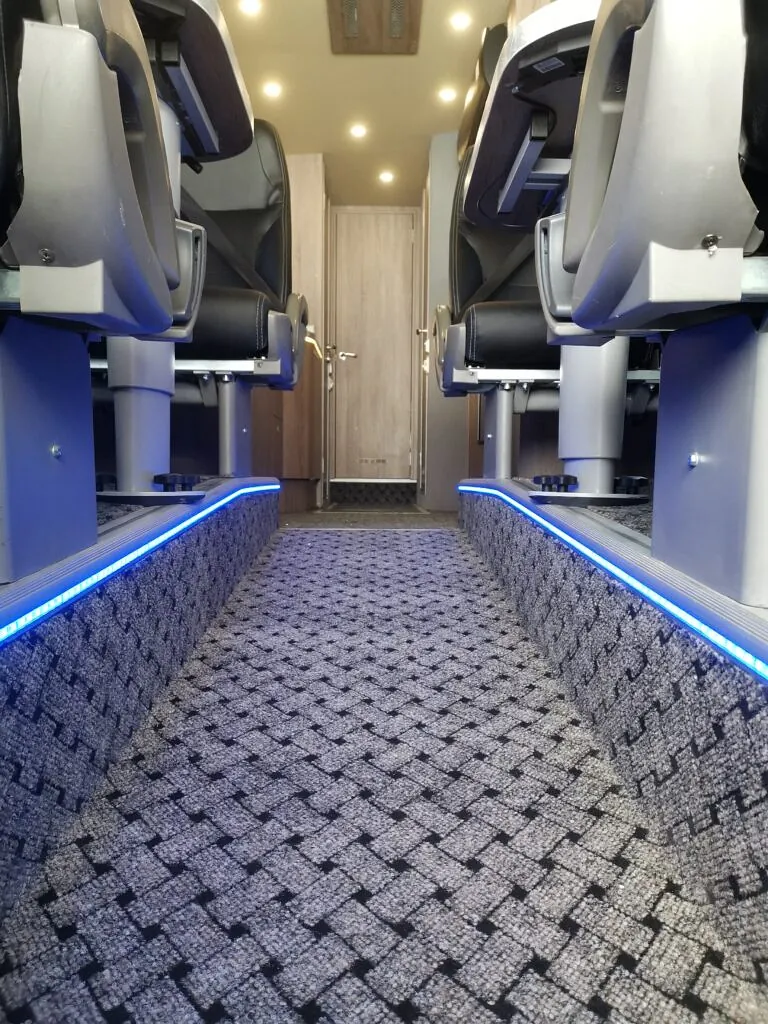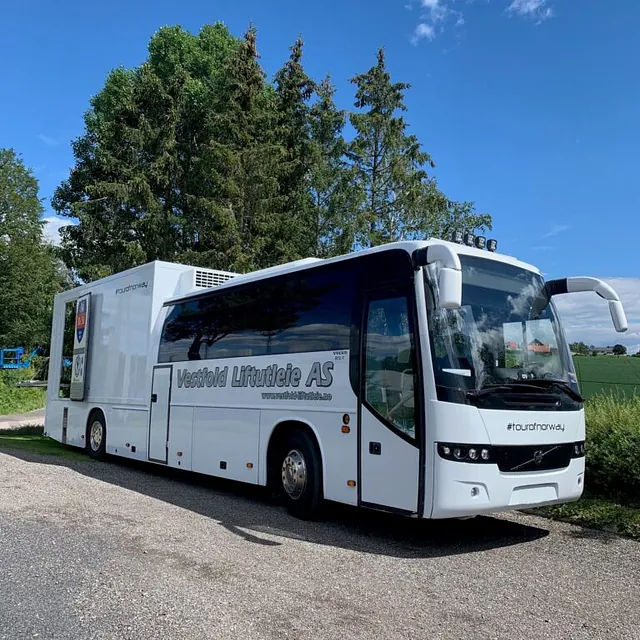 Bussen er ellers utstyrt med vår «standardpakke», med alt som trengs for en god opplevelse på tur!
